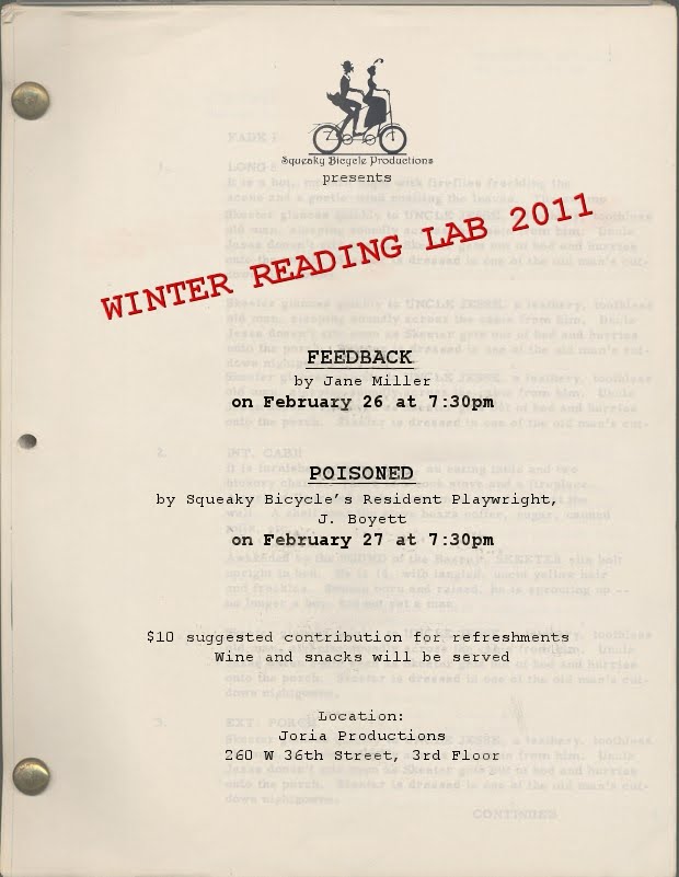 Happy New Year from Squeaky Bicycle Productions! 2011 has already been busy as we prepare for the first event of our season: Squeaky Bicycle’s Winter Reading Lab.